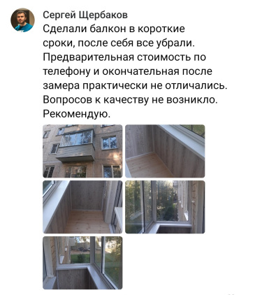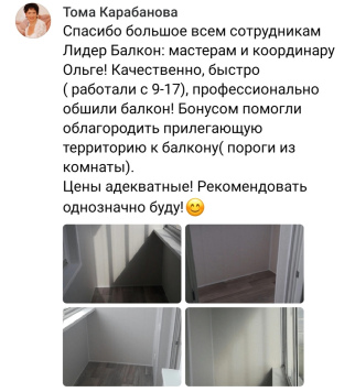 Компания "Лидер Балкон" осуществляем деятельность с 2011 г. Предлагаем вам качественный замер, профессиональный монтаж, сертифицированную продукцию, короткие сроки от замера до установки и хорошие цены.